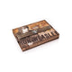 El conjunto viene presentado en una caja especialmente diseñada, con unas medidas aproximadas de 20 x 28 cm, ideal para exhibir o conservar como pieza de colección.