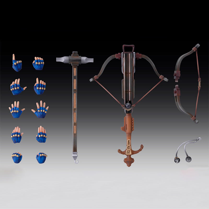 Incluye manos intercambiables y armas emblemáticas como la ballesta y el martillo, lo que ofrece infinitas posibilidades de personalización. Presentada en una elegante caja con ventana, ideal para exhibir sin abrir, esta figura combina detalle, calidad y autenticidad en una pieza imprescindible para cualquier coleccionista de JoJo’s Bizarre Adventure.