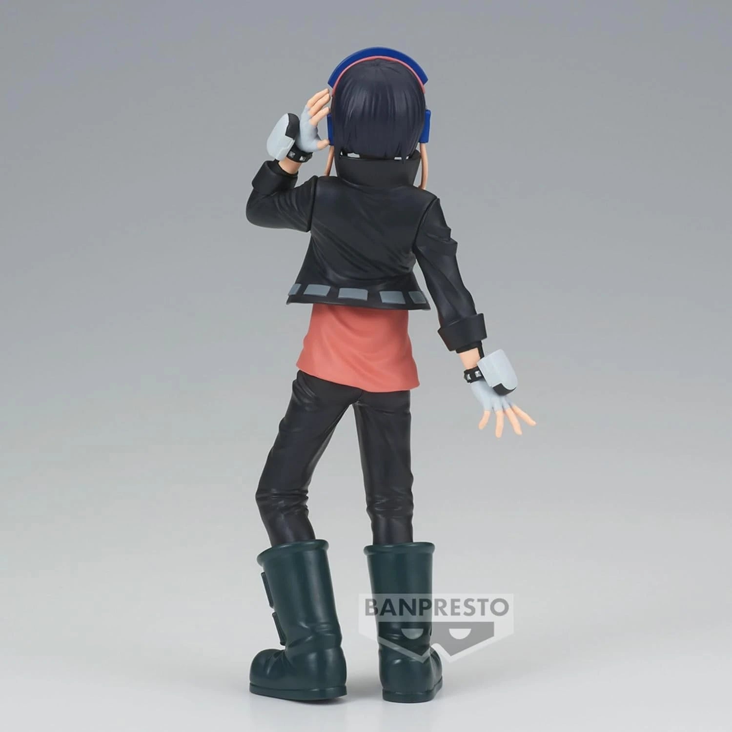 La figura de Earphone Jack, también conocida como Kyoka Jiro, forma parte de la línea Age of Heroes de Banpresto y destaca por su diseño dinámico y fiel al personaje. Con una altura aproximada de 15 cm, representa a la aspirante a heroína en su icónico traje, mostrando sus cables auditivos conectados a su equipo, un detalle clave de su habilidad de amplificar el sonido. Su pose firme y actitud segura la convierten en una pieza que transmite perfectamente su personalidad calmada y letal en combate.