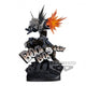 Esta figura destaca por su acabado en escala monocromática con detalles en color, lo que genera un contraste visual espectacular que resalta el fuego de su ataque y la intensidad del personaje. Su base recrea una ciudad destruida en pleno combate, dando la sensación de que la explosión fue tan real como en el anime.