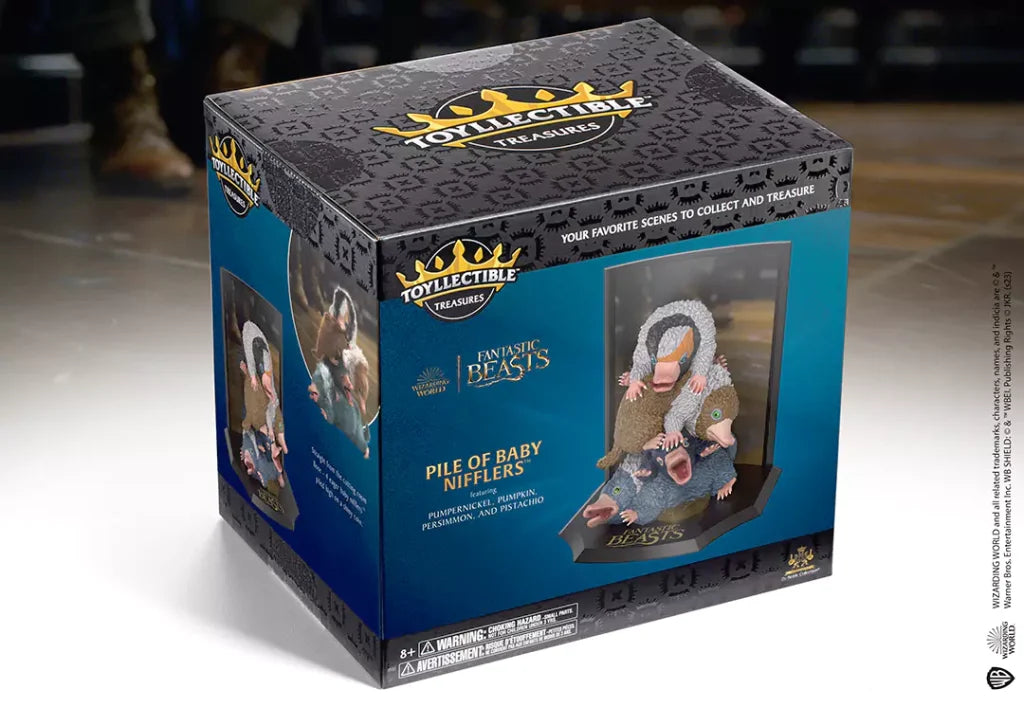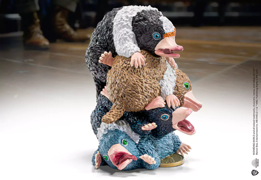 Los Nifflers son conocidos por su curiosidad insaciable y su debilidad por los objetos brillantes, y esta figura de Nifflers captura a la perfección su personalidad traviesa y entrañable. Con unas dimensiones aproximadas de 13 x 8 x 11 cm, la figura está cuidadosamente diseñada y pintada, destacando la textura de su pelaje, sus expresiones simpáticas y su aspecto fiel al visto en Animales Fantásticos.