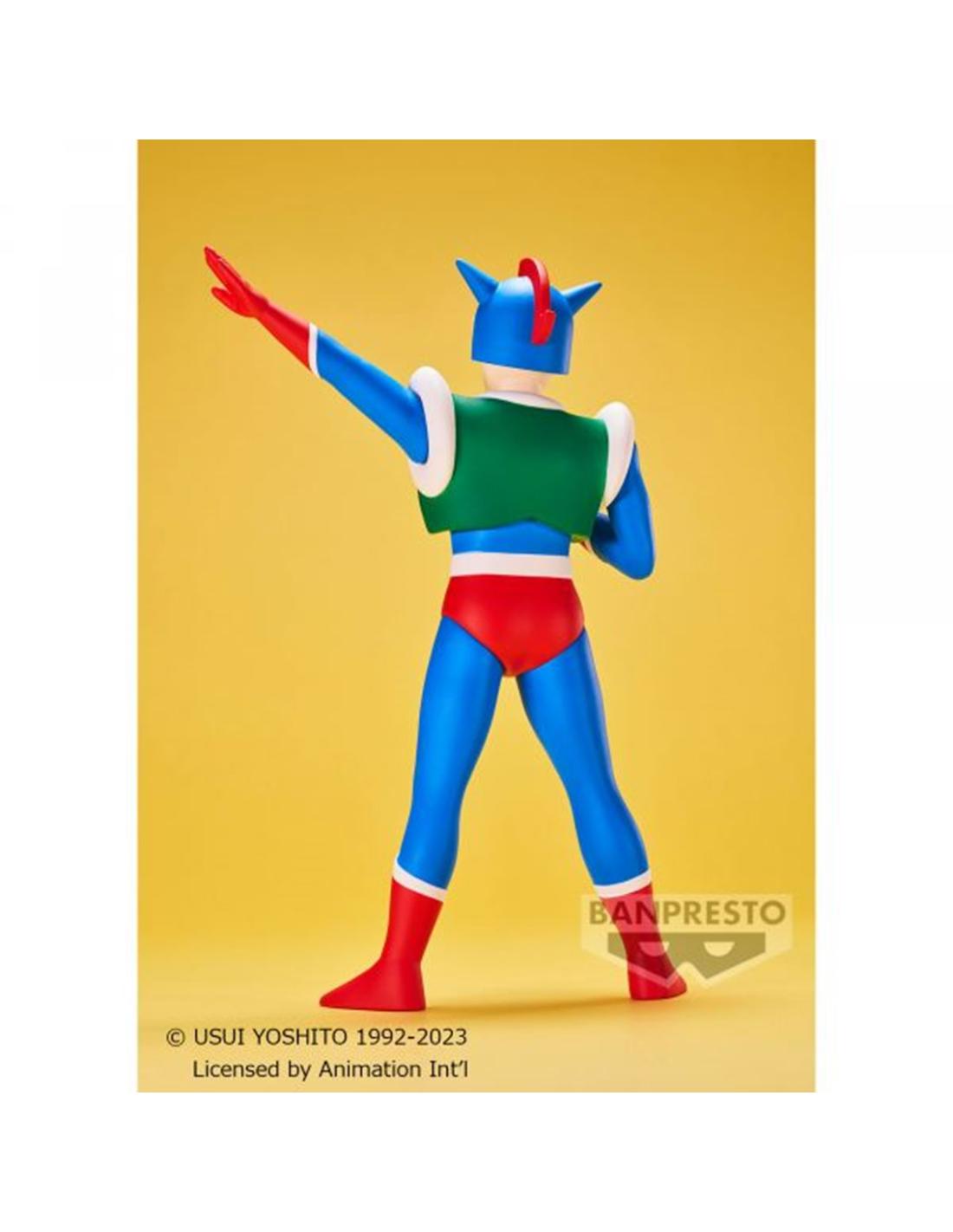 Con una altura aproximada de 16 cm, la figura está elaborada en PVC y ABS pre-pintado, destacando por su pose heroica, su icónico traje con capa, casco y puños preparados para el combate. Cada detalle —desde los colores vibrantes hasta la expresión decidida— está trabajado con el estilo característico de Banpresto, uno de los fabricantes japoneses más reconocidos del mundo por su relación calidad-precio y la fidelidad de sus colecciones. Incluye además una base soporte especial, perfecta para exponerlo de manera estable en vitrinas o estanterías.