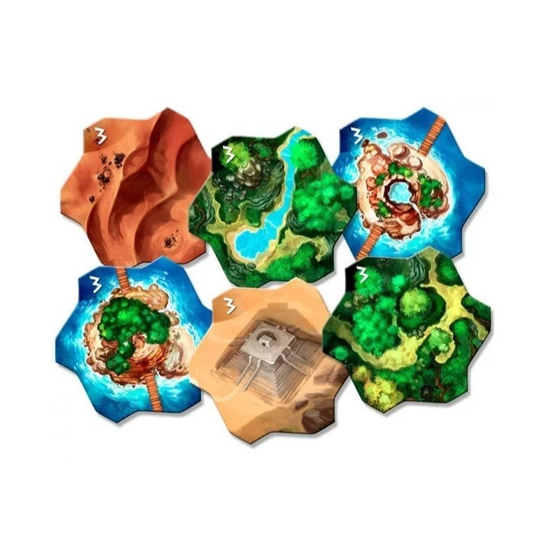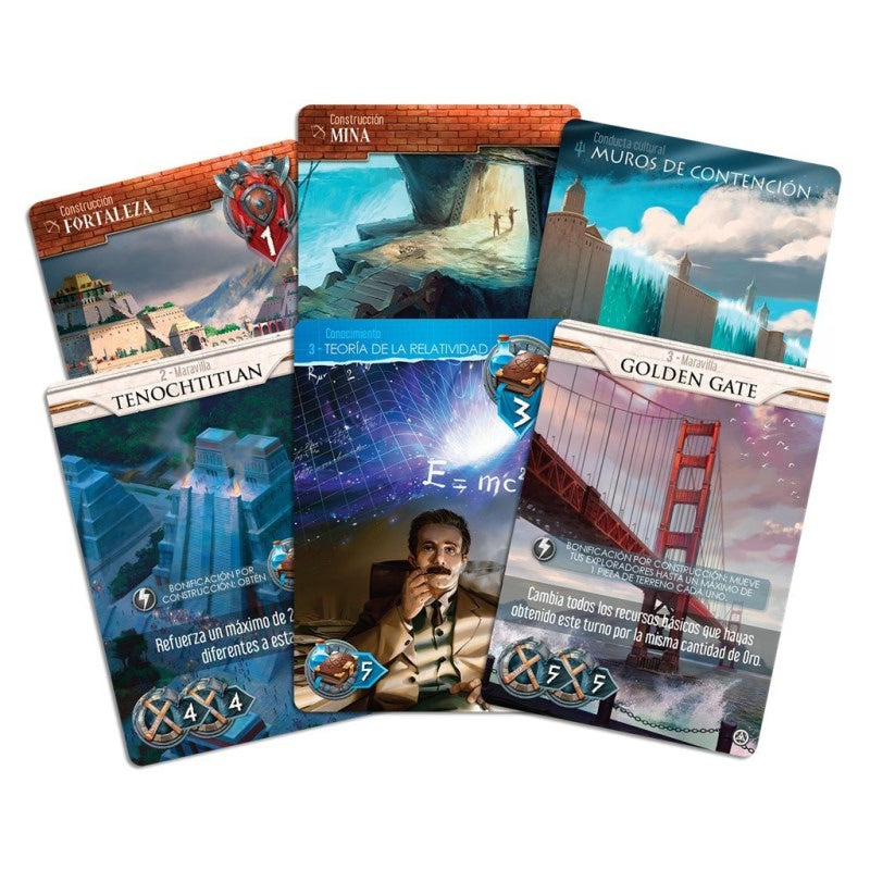 Además de las nuevas facciones, Reinos Perdidos incorpora piezas de Terreno adicionales, como desiertos, selvas, islas y pirámides aztecas, ampliando las posibilidades tácticas y permitiendo partidas para hasta cinco civilizaciones simultáneas. Su contenido se complementa con cartas exclusivas de Civilización y Desarrollo, fichas de unidad, exploración y puestos de avanzada, además de un reglamento con ocho nuevos mapas completos.