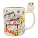 Su diseño presenta una ilustración doble: por un lado, Privet Drive, el hogar muggle de Harry, y por el otro, el Castillo de Hogwarts, el lugar donde comienza su verdadera historia. Pero el detalle más sorprendente es el asa decorada con una figura tridimensional de Hedwig, esculpida con precisión para representar a la fiel mensajera de Harry Potter.