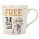 Su diseño está inspirado en Dobby, el entrañable elfo de la saga, representado con sus característicos ojos grandes y orejas puntiagudas. A un lado de la taza puede leerse el texto “Free the House Elves”, y al otro, la mítica frase “Dobby has no master, Dobby is a free elf”, todo ello en un acabado con tonos dorados y detalles de alta calidad.