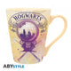 La taza presenta una ilustración detallada de Hogwarts dentro de una bola de cristal, acompañada por la icónica poción en forma de corazón. Cada elemento está cuidadosamente impreso con colores vivos y un acabado brillante, lo que la convierte en una pieza decorativa y funcional perfecta para fans y coleccionistas.